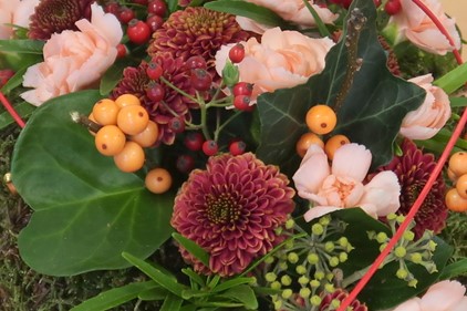 Onder professionele leiding van Loes Amesz maken de cursisten prachtige creaties met bloemen, blad en andere materialen, die zij zelf meebrengen.