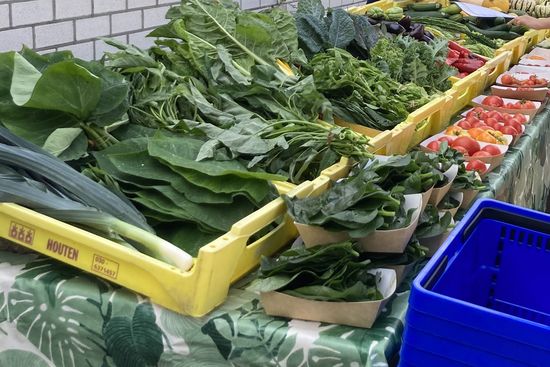 Een groot aantal vrijwilligers is dagelijks bezig om te zorgen dat de maandelijkse moestuinmarkt plaats kan vinden; iedere eerste vrijdag van de maand. En dan vind je allerlei groentes en vooral veel groentes die bij ons niet zo bekend zijn. Maar bij bijvoorbeeld de Surinaamse bevolking wel.