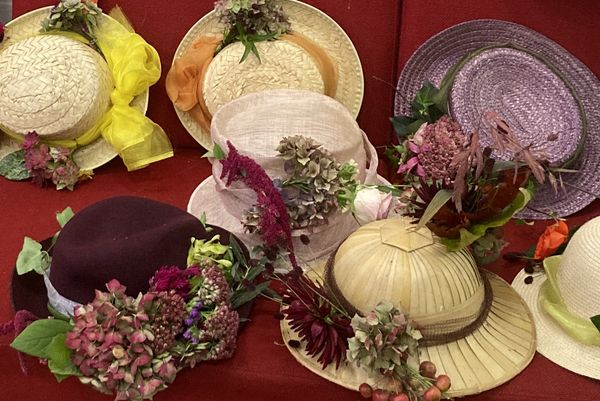 Uit een groot assortiment hoedjes zoeken de deelnemers een hoedje uit en maken een keuze uit de bloemen en het verdere decoratiemateriaal, dat klaar ligt. De bloemen zijn duurzaam en onbespoten en komen uit diverse tuinen van Groei & Bloei-leden en uit de bloementuin van De Coöperij.