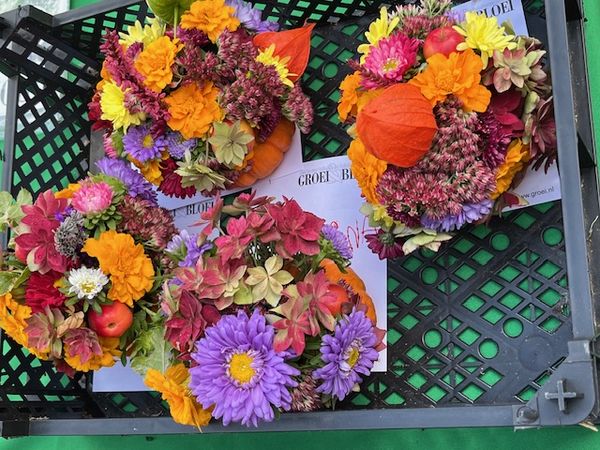 Na een korte uitleg begonnen ze enthousiast te zoeken naar allerlei soorten herfstbloemetjes, zaden en vruchten. Daarna gingen ze met of zonder hulp aan de slag. Er ontstonden werkelijk prachtige kleurrijke werkjes.