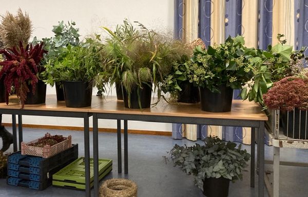 Als eindresultaat allemaal verschillende creaties: van royale, volumineuze kransen tot en met meer ingetogen, compacte modellen, Alle deelnemers gingen zeer tevreden met hun creatie naar huis.