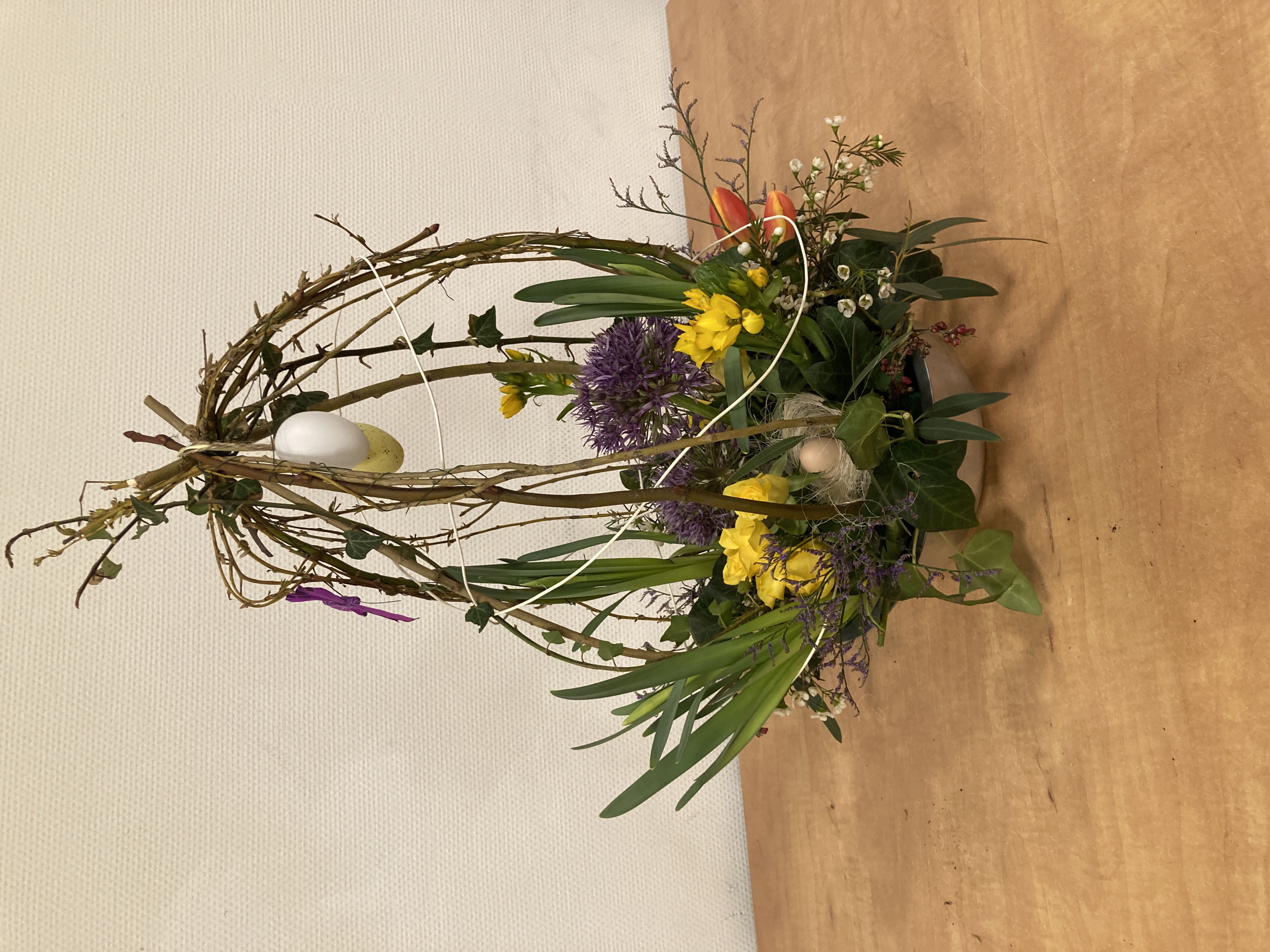 Aan het einde van de avond gaan wij tevreden naar huis met een vrolijke voorjaarscreatie.